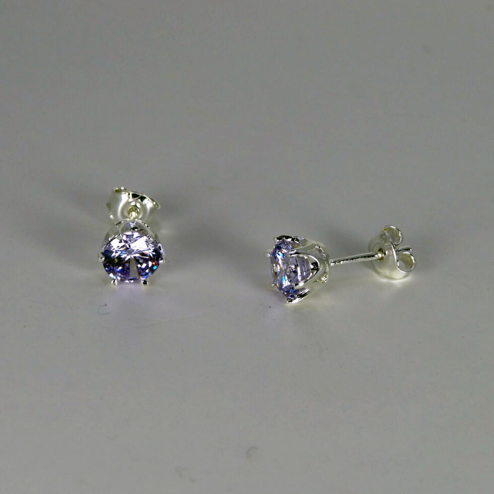 Srebrne kolczyki w próbie 925 z okrągłymi, fasetowanymi topazami o średnicy 6 mm.