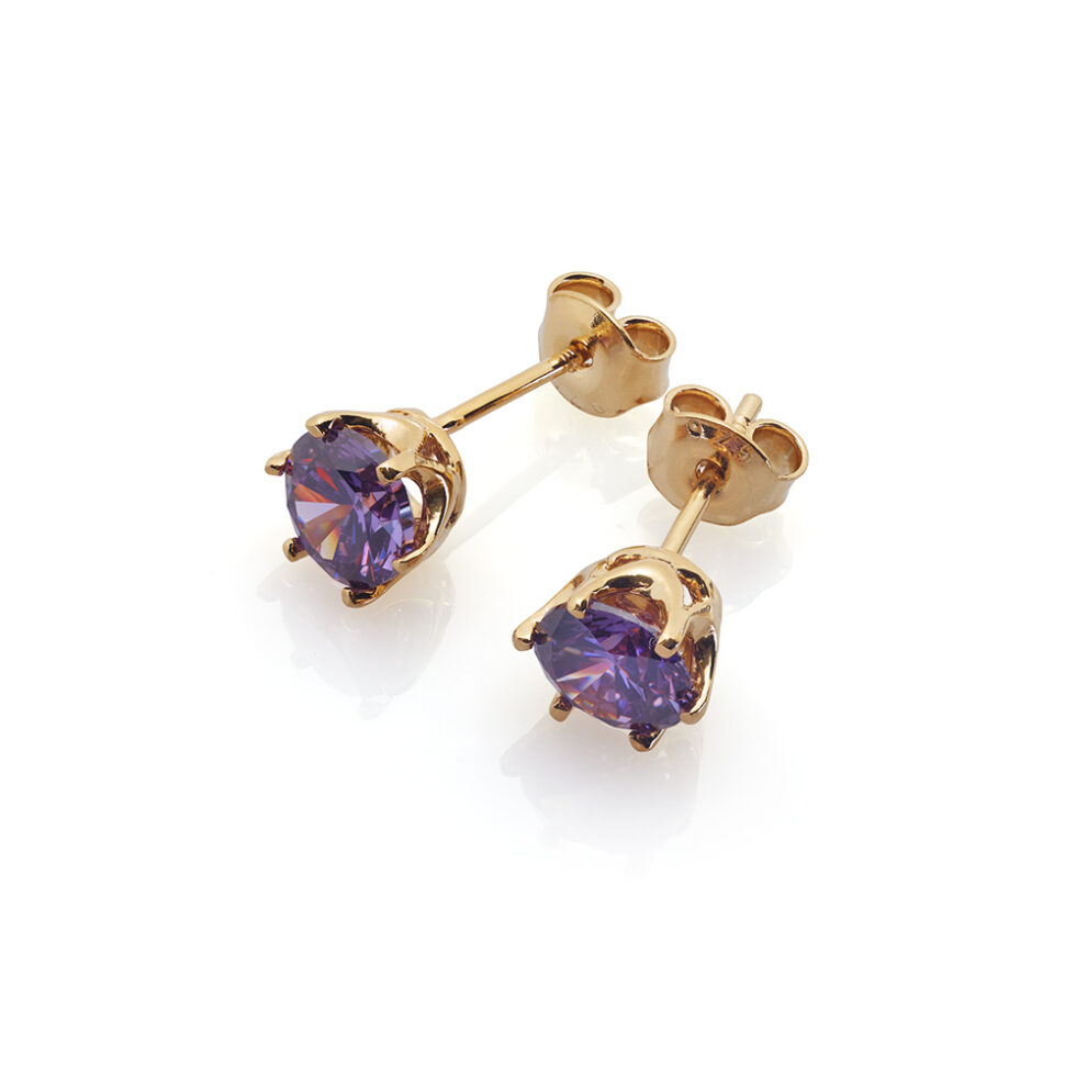 Złote kolczyki w próbie złota 585 z okrągłymi, fasetowanymi topazami o średnicy 6mm.