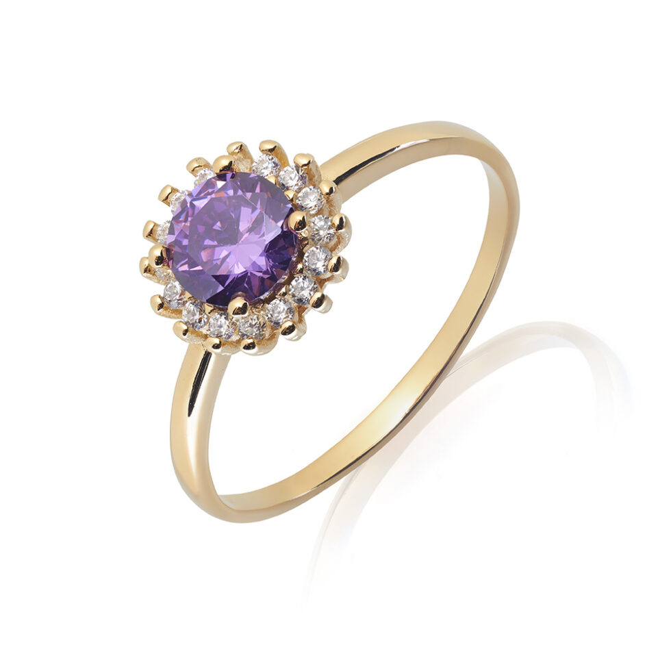 Pierścionek złoty w próbie 585 z topazem i moissanitami